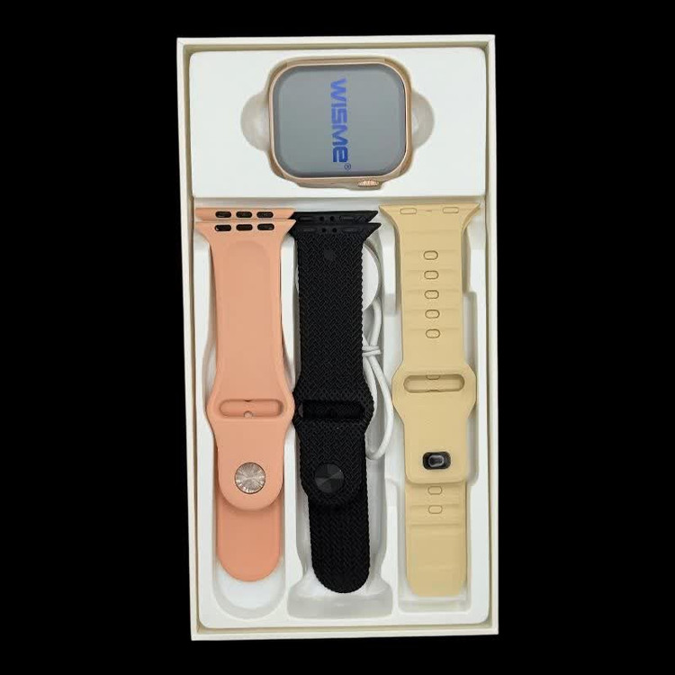 تصویر سه بند صورتی (گلبهی) مشکی و کرمی ساعت هوشمند Wisme مدل Ws-x10رر