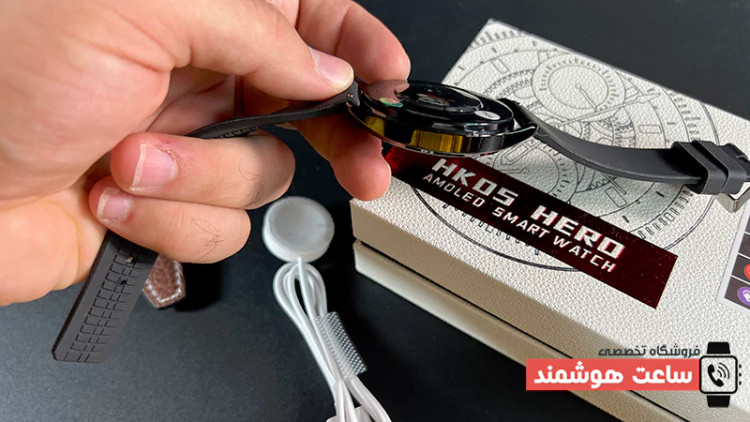 علاوه بر این، بند، یک بند فلزی نیز در جعبه همراه با محصول عرضه میشود که بیشتر برای مکانهای رسمی مورد استفاده قرار میگیرد. در لبههای کناری بدنه اسمارت واچ شما میتوانید شاهد مجیک باتن یا دکمه چرخان به همراه دو دکمه فیزیکی دیگر باشید که برای انجام تنظیمات مربوطه مورد استفاده قرار میگیرند و کارهای شما را با سرعت بالایی در هر زمان انجام میدهند. پنل جلویی ساعت هوشمند مدل HK9 Hero صفحه نمایش 2.02 اینچی را دربرمیگیرد که از فناوری AMOLED پشتیبانی میکند و تصاویر مختلف را با وضوح بالایی به نمایش میگذارد.